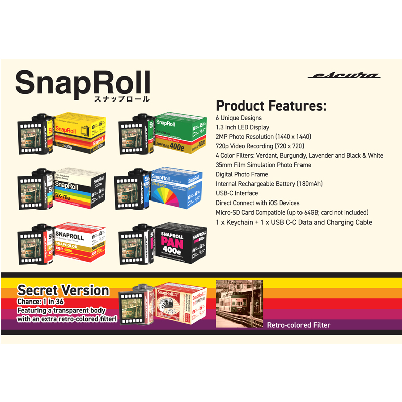 This blind box is also the perfect companion for parties, whether as a surprising gift, a unique collectible, or a fun experience to share with friends. SnapRoll offers users limitless possibilities! With six unique retro designs and one mystery version, each unboxing is an exciting adventure waiting to be unveiled.