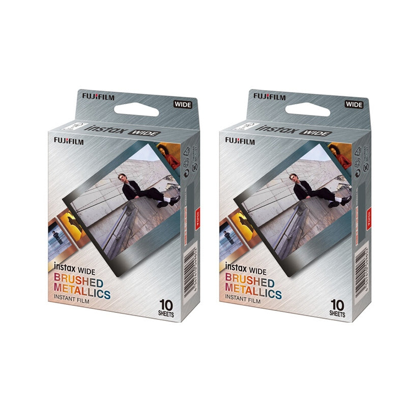 The instax™ WIDE Brushed Metallics instant film pack is available in a 10 exposure pack. It can be used with all instax™ WIDE instant cameras, the instax Link WIDE™ Smartphone printer, and the instax™ WIDE Evo hybrid instant camera.
