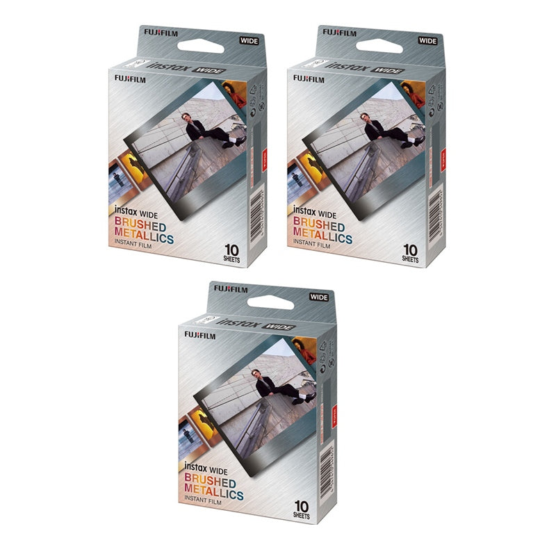 The instax™ WIDE Brushed Metallics instant film pack is available in a 10 exposure pack. It can be used with all instax™ WIDE instant cameras, the instax Link WIDE™ Smartphone printer, and the instax™ WIDE Evo hybrid instant camera.