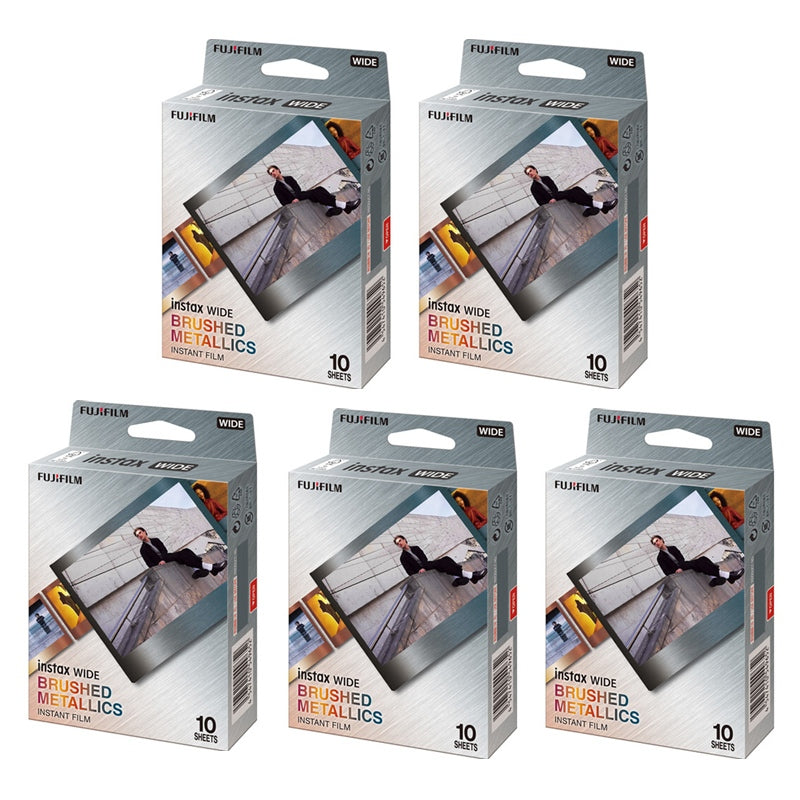 The instax™ WIDE Brushed Metallics instant film pack is available in a 10 exposure pack. It can be used with all instax™ WIDE instant cameras, the instax Link WIDE™ Smartphone printer, and the instax™ WIDE Evo hybrid instant camera.