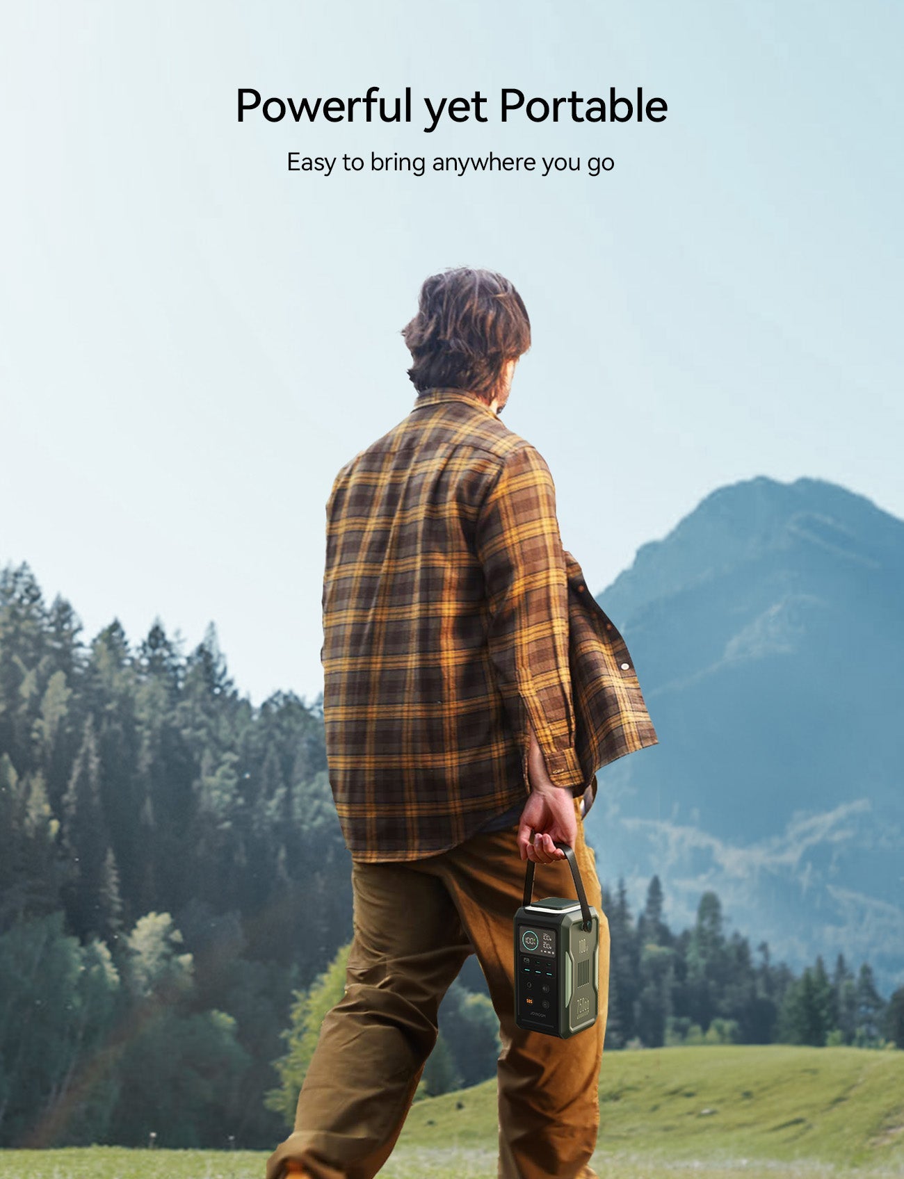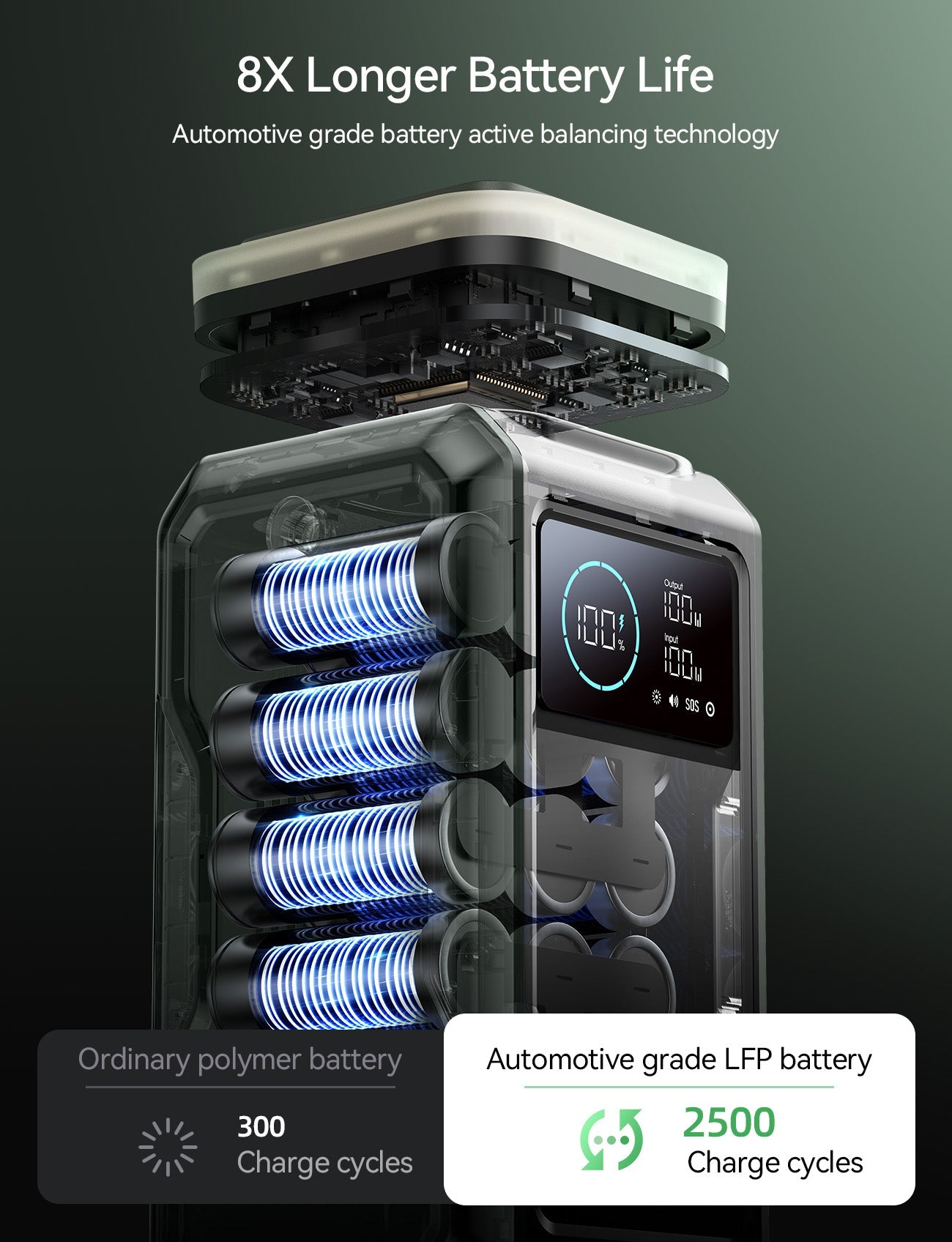 7. Recharge at 100W input (max) via the DC port or with solar panels when outdoors