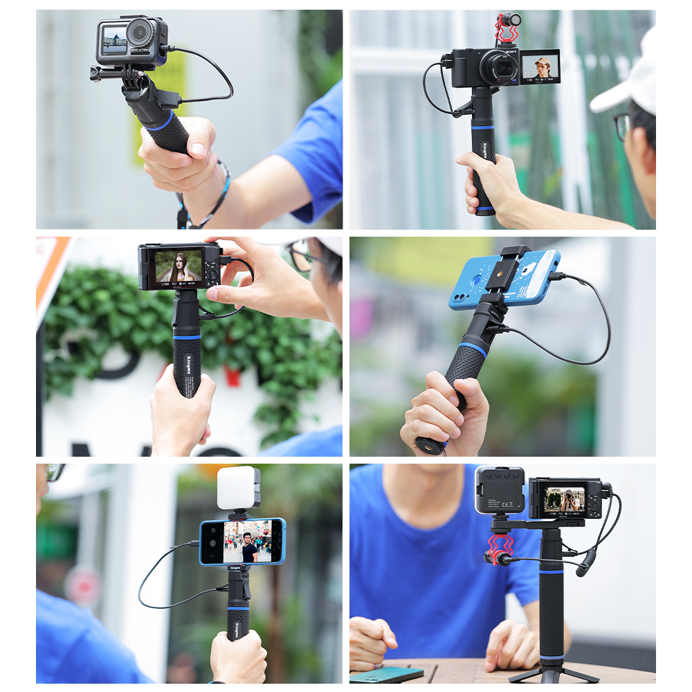 Multi-functional Design: This power handle grip doubles as a camera stand and selfie stick, offering flexibility in your shooting setup. Use it with a mini tripod, smartphone clip, or GoPro adapter for varied shooting possibilities.