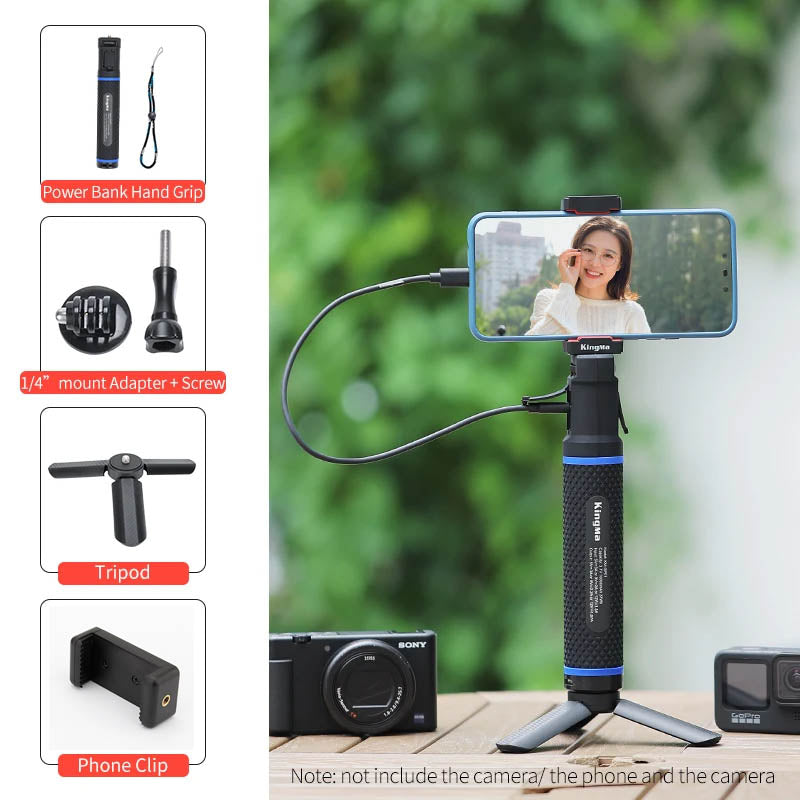 Enhance your shooting experience with the Kingma Power Handle Grip, a versatile accessory designed for cameras, GoPros, mobile phones, and more. Whether you're vlogging, live broadcasting on YouTube, or engaging in delayed shooting, this power grip ensures you never run out of battery.