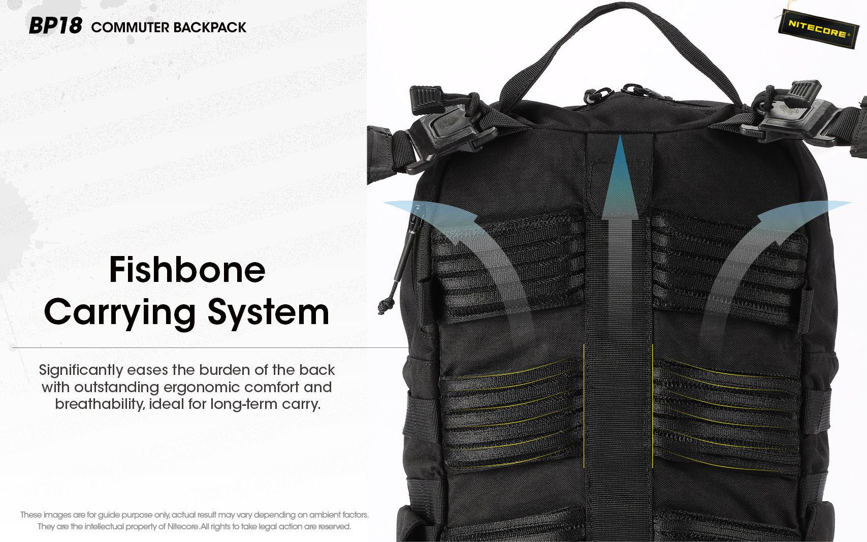 Designed specifically for commuters and overnight trips, the backpack is equipped with an 18 litre compartment featuring quick release shoulder straps and a unique fishbone carrying system for outstanding ergonomic comfort and breathability.