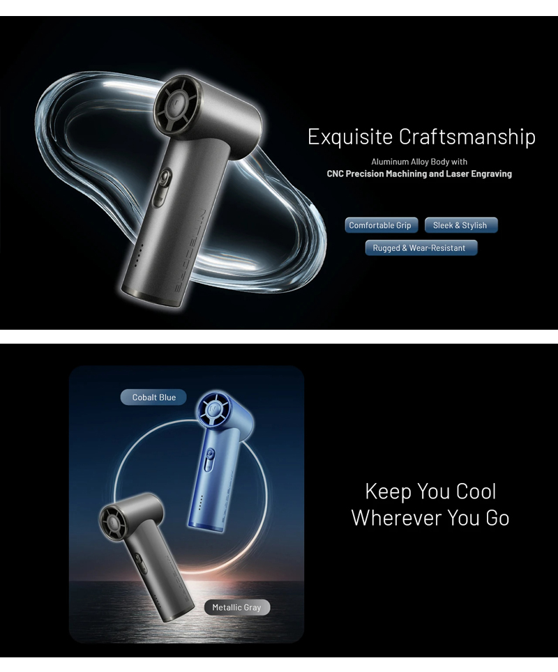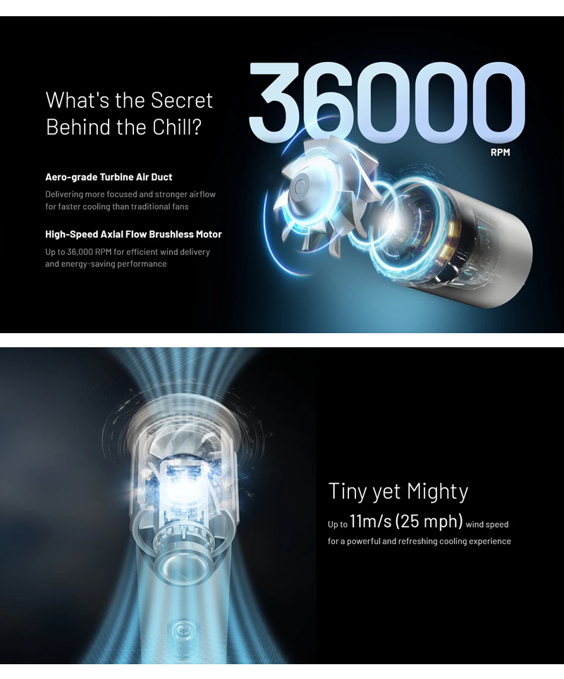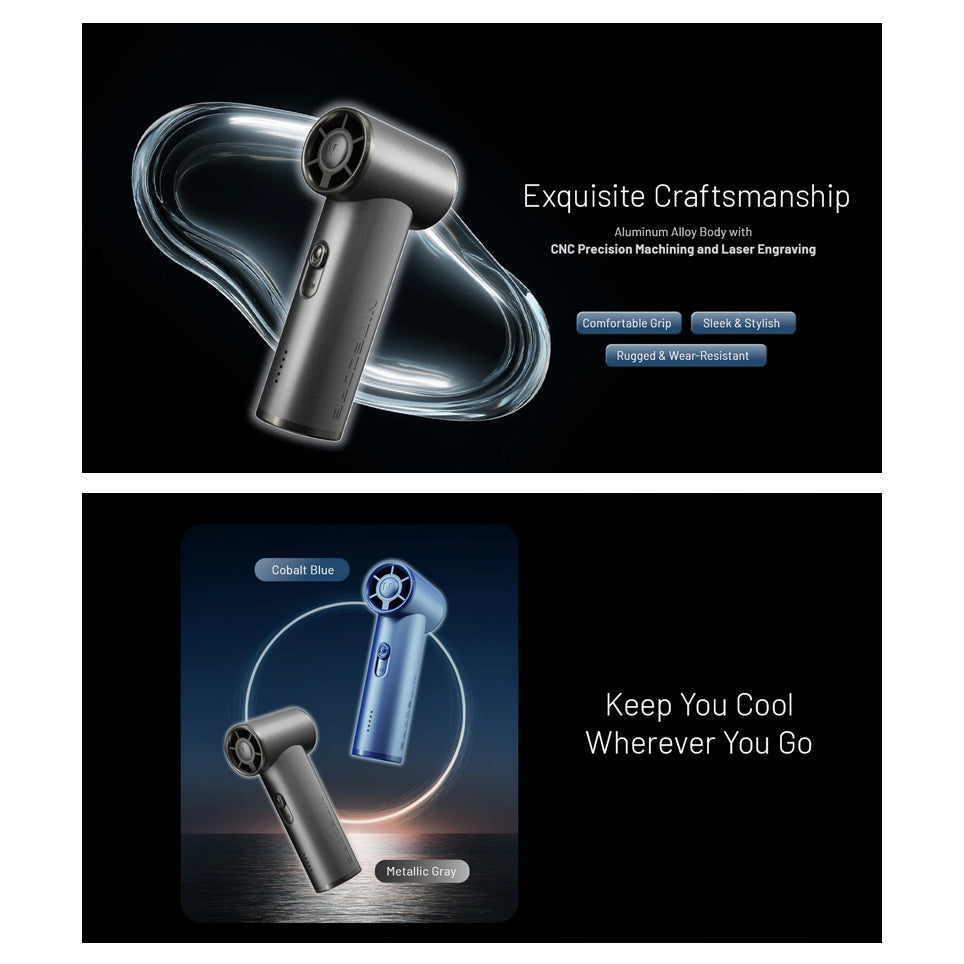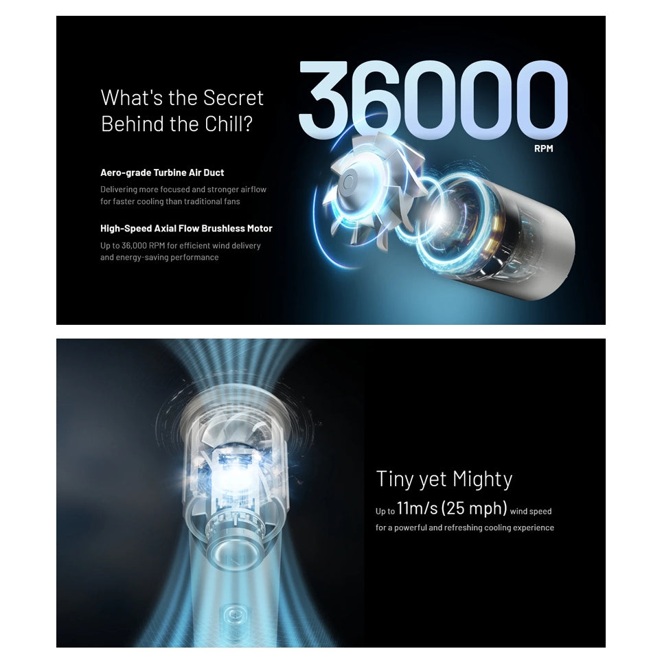 The NEF01's 36,000 RPM turbine technology creates measurable cooling you can feel from 3 feet away.
