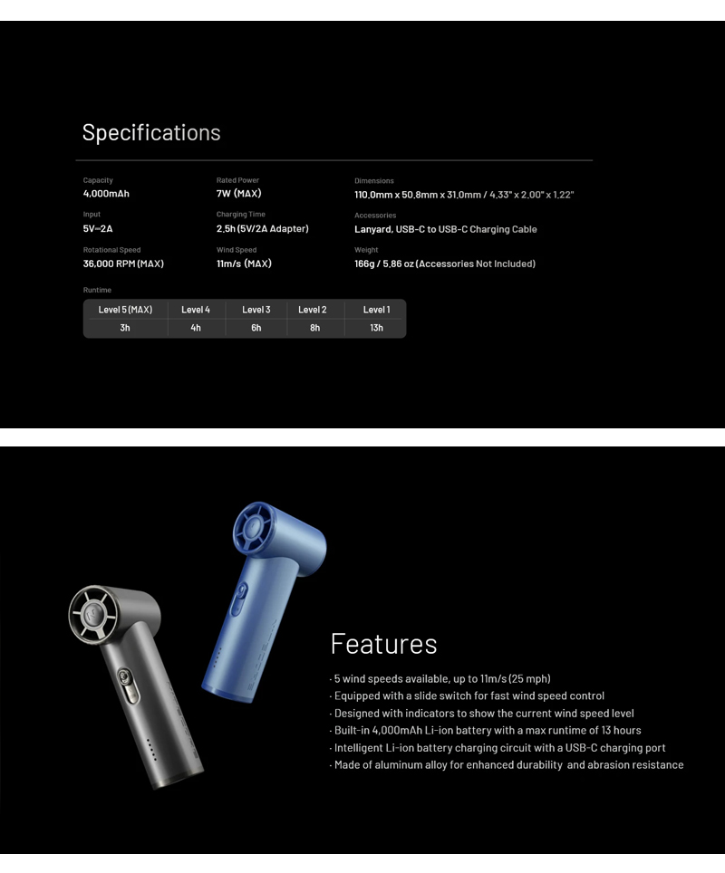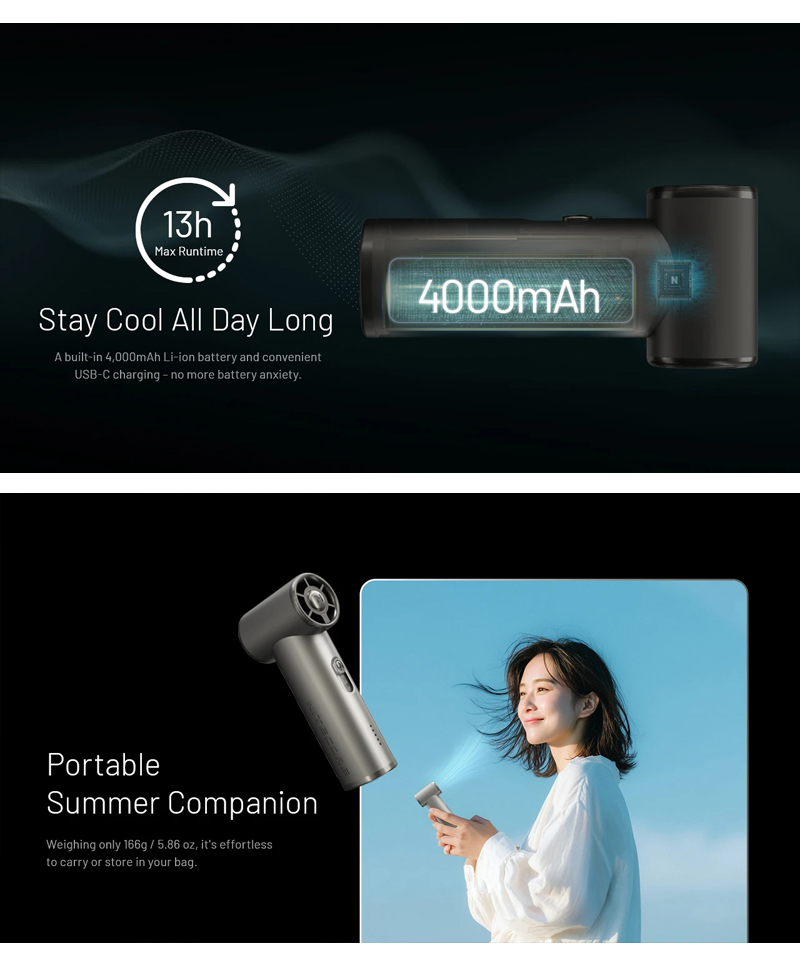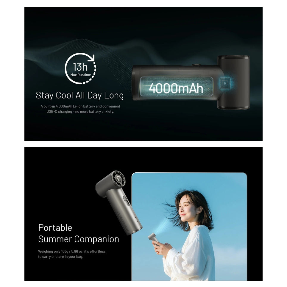 Its built-in 4000mAh rechargeable battery offers up to 13 hours of runtime, and with five adjustable speed settings, you can easily control the breeze to match your environment.