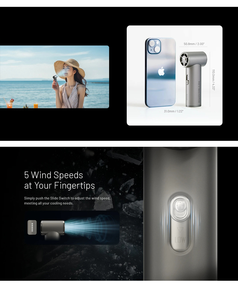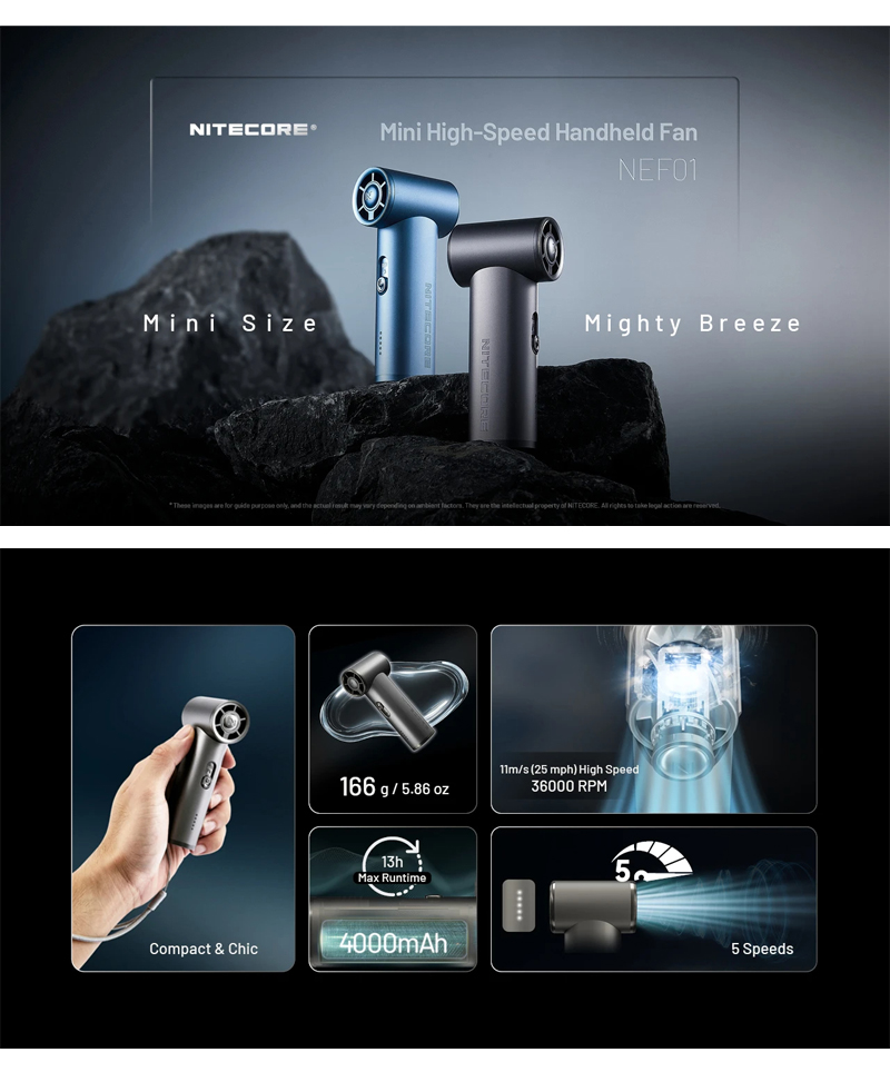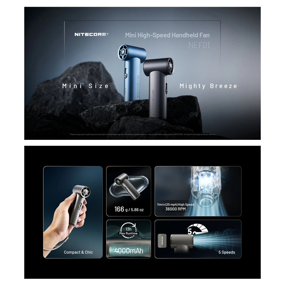The Nitecore NEF01 is a mini high-speed handheld fan which delivers an incredible wind speed of 11m/s (25mph).