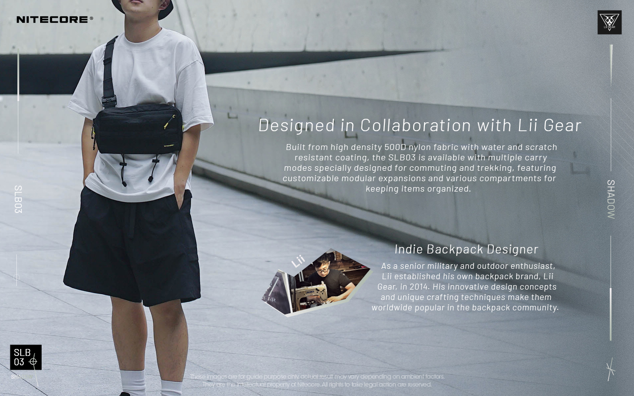 The Nitecore SLB03 sling bag has been designed in collaboration with indie backpack brand, Lii Gear. A senior military and outdoor enthusiast, Lii offers innovative design concepts and unique crafting techniques that are popular in the backpack community.