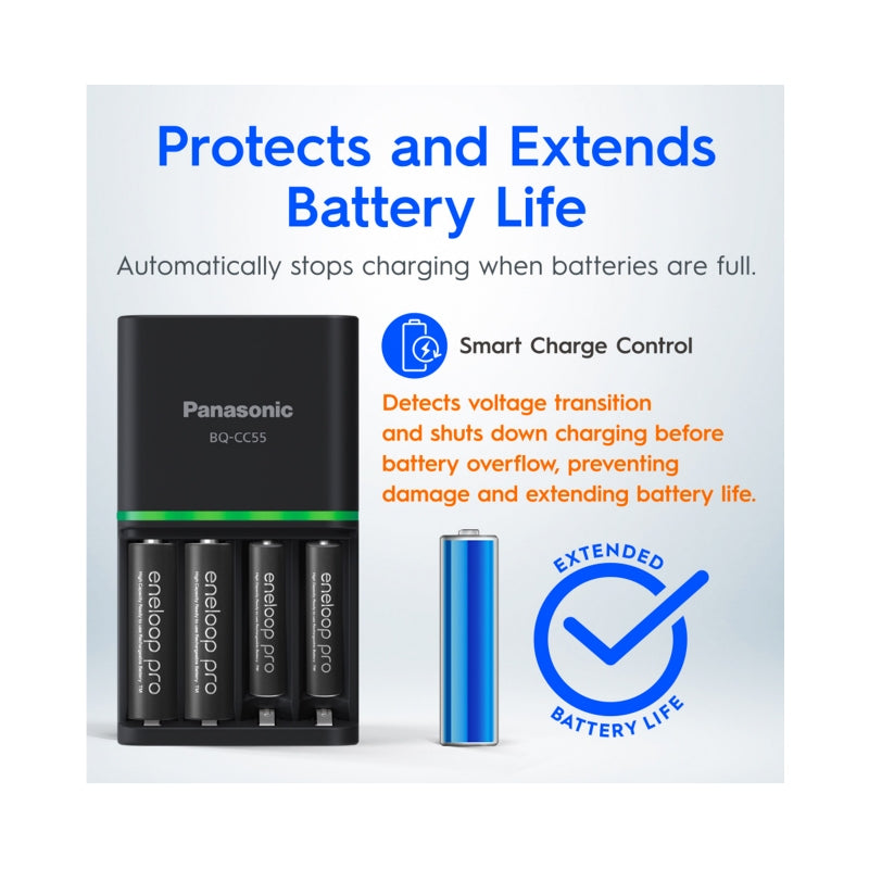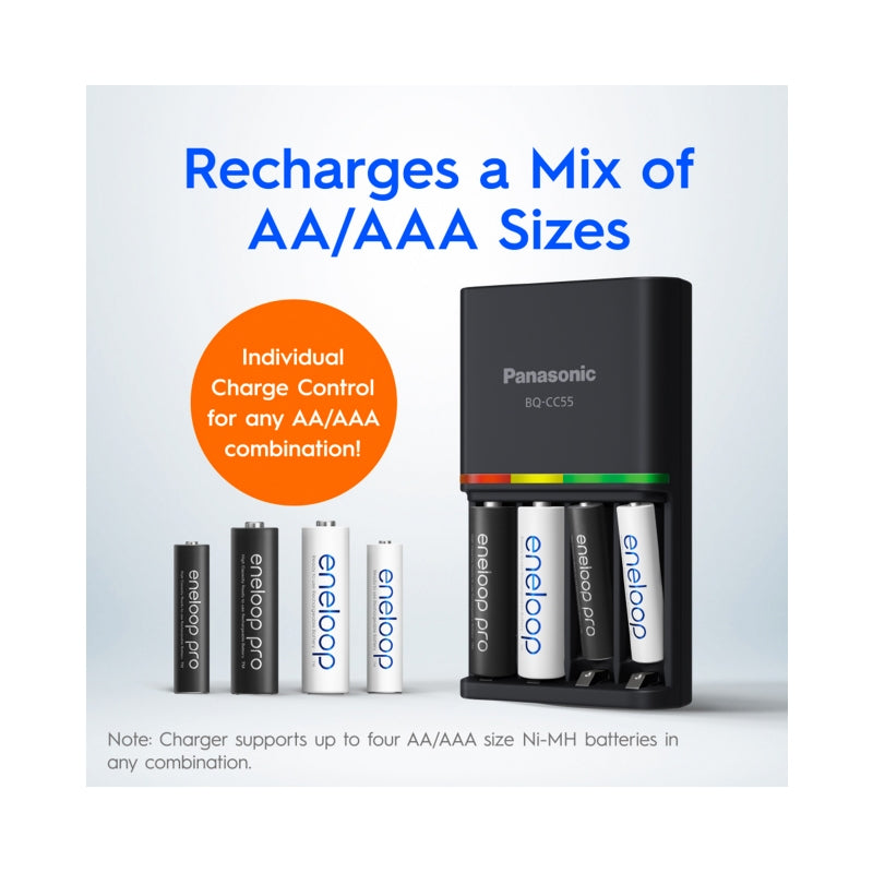 PANASONIC ENELOOP PRO 2HR QUICK CHARGER WITH 4 PCS AA ENELOOP PRO RECHARGEABLE BATTERY