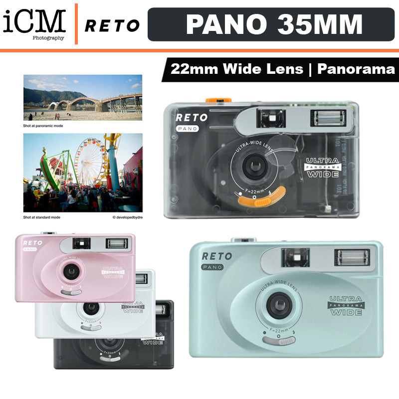 The RETO PANO 35mm Film Camera features an easy switch between standard and cinematic modes. 22mm lens gives an ultra-wide-angle coverage for landscape and travel photography. Hiking through mountains? Twist for panorama. Brunch with friends? Switch back to classic. Swapping between the two modes mid-roll - no pauses, no fuss, just endless creative freedom.