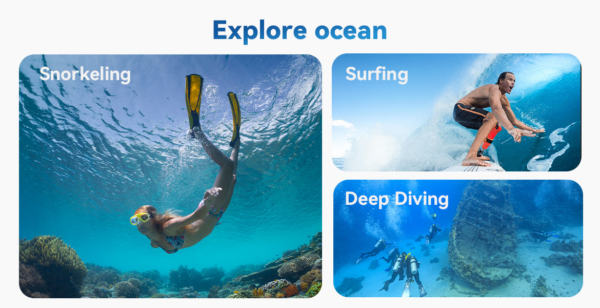 【Underwater 40M Photography】Tightly close with buckle, Waterproof up to 40Meters / 130 FT, ideal for diving, surfing, snorkeling and other water sports activities.