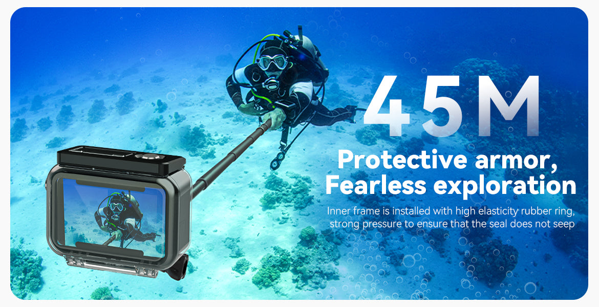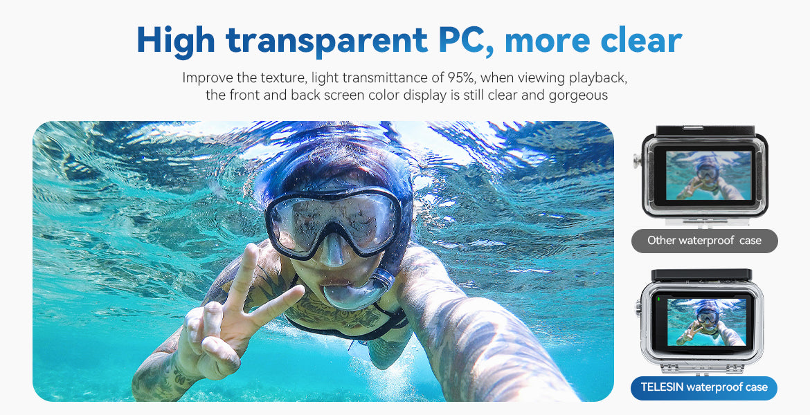 【HD Scratch-proof Lens】Excellent PMM A high transparent material, strong structure, Underwater dive case allows you to see clear and vivid picture from camera, keep a good photo shooting.
