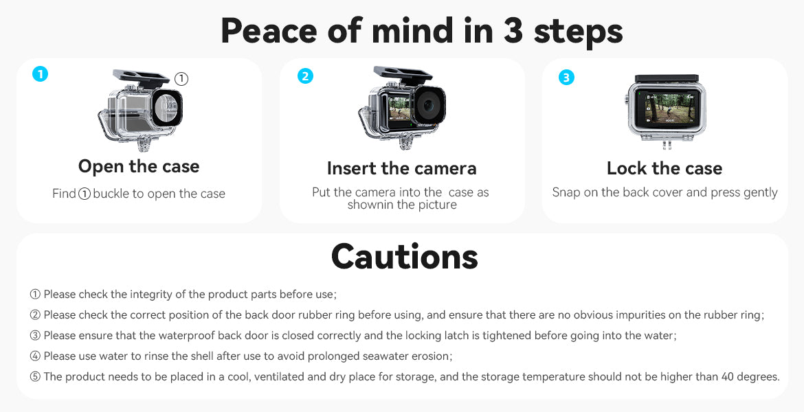 【Specially Designed】This waterproof protectve case is specially designed for DJI OSMO Action Camera, It well protect the camera when doing extreme water sports.