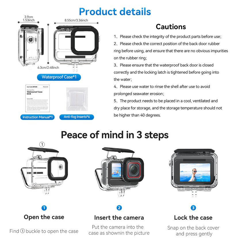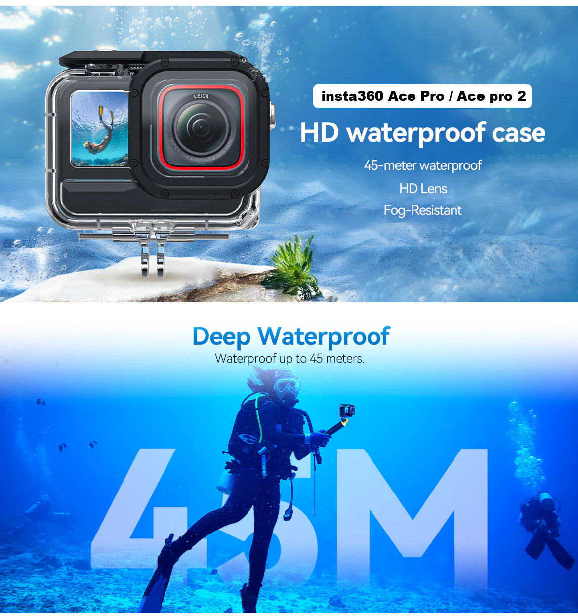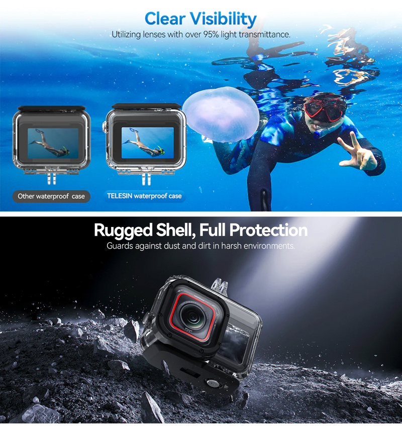 1.HD waterproof case - 45-meter waterproof ,HD Lens,Fog-Resistant