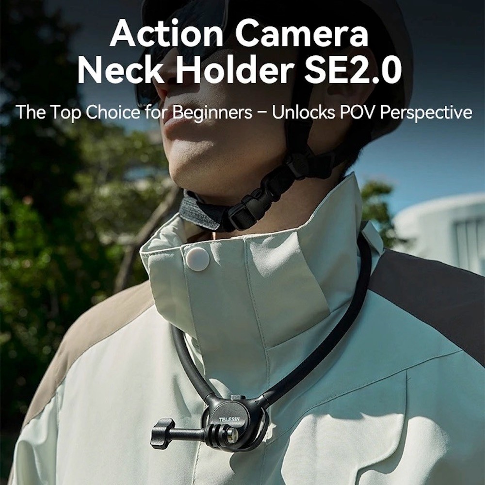The Neck Holder SE 2.0 is designed for creators who want a more relaxed alternative to a tight action camera head mount. The combination of flexible tubing, a supportive chest strap, and air-cushion padding helps distribute pressure, making it easier to wear over T-shirts, hoodies, or light jackets.