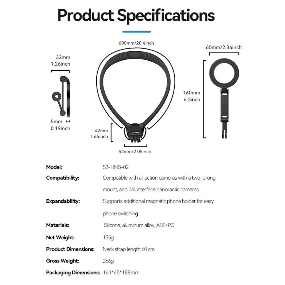 The flexible neck tube bends to match your body shape and preferred shooting angle. The adjustable chest strap securely holds the neck holder in place, helping reduce shake when you walk, run, or ride.