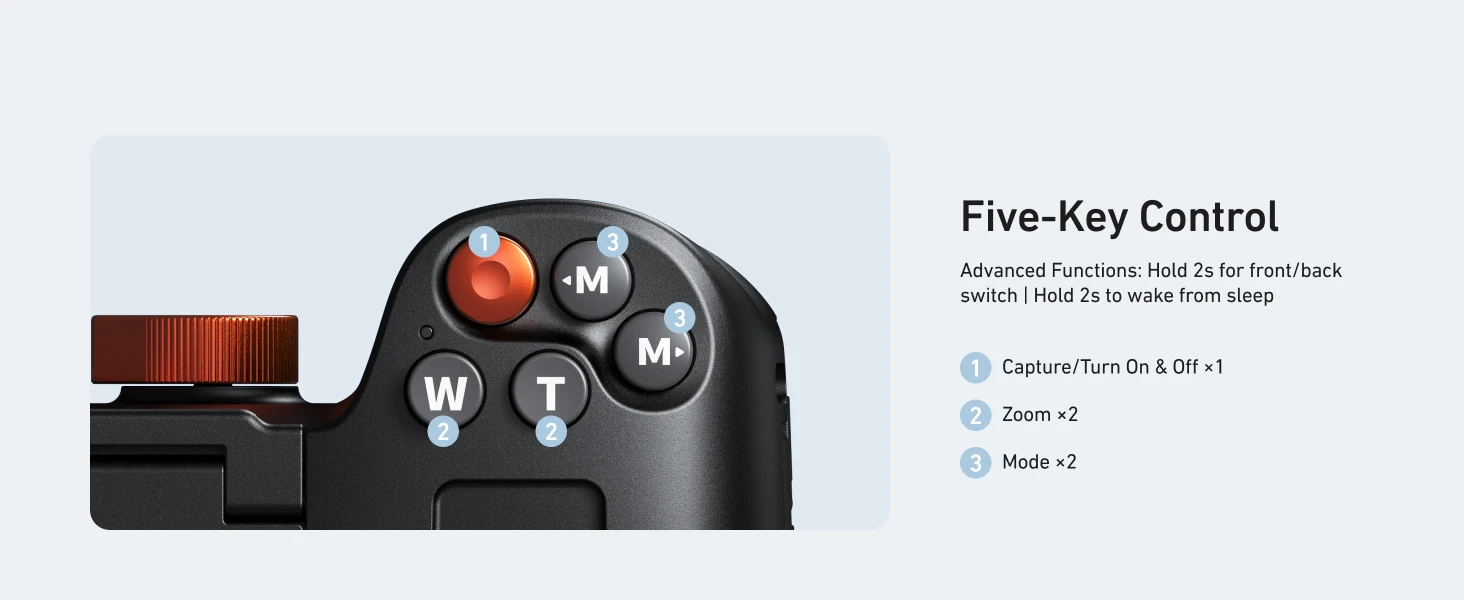 ✅ Bluetooth Remote Control: One-finger operation for shutter, zoom, camera switch (front/rear), and screen wake-up.