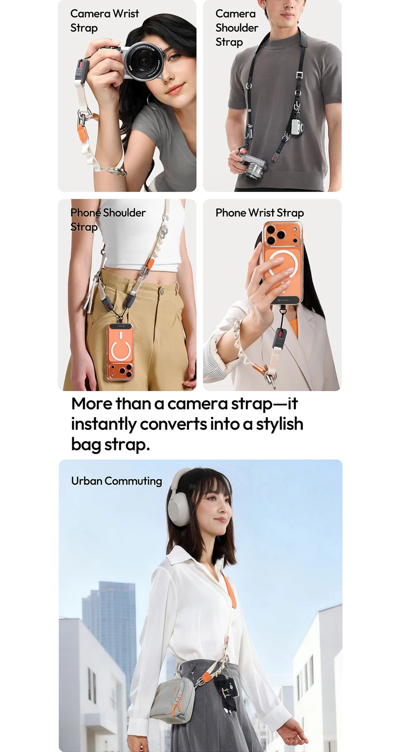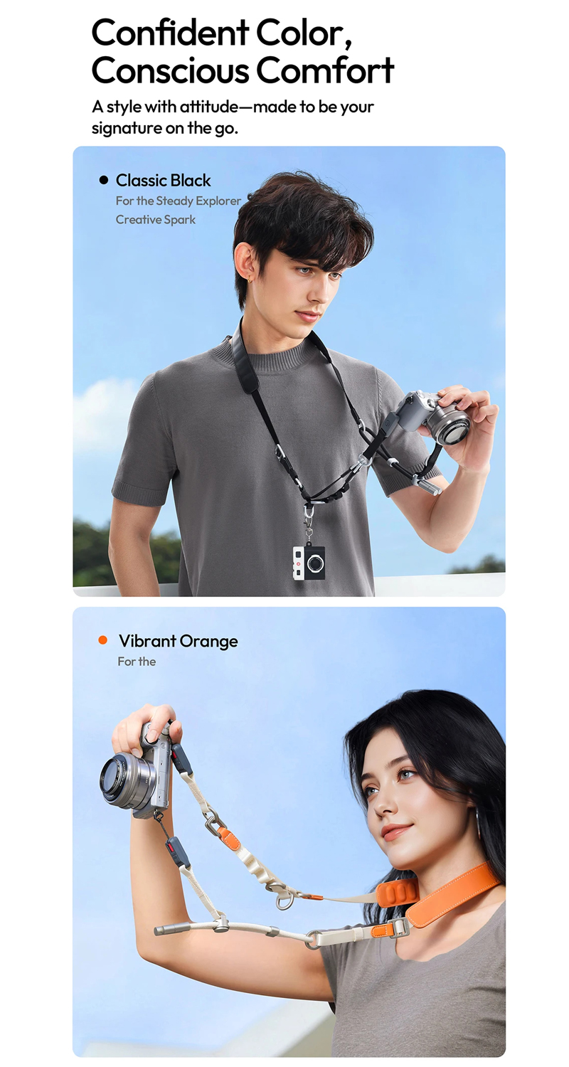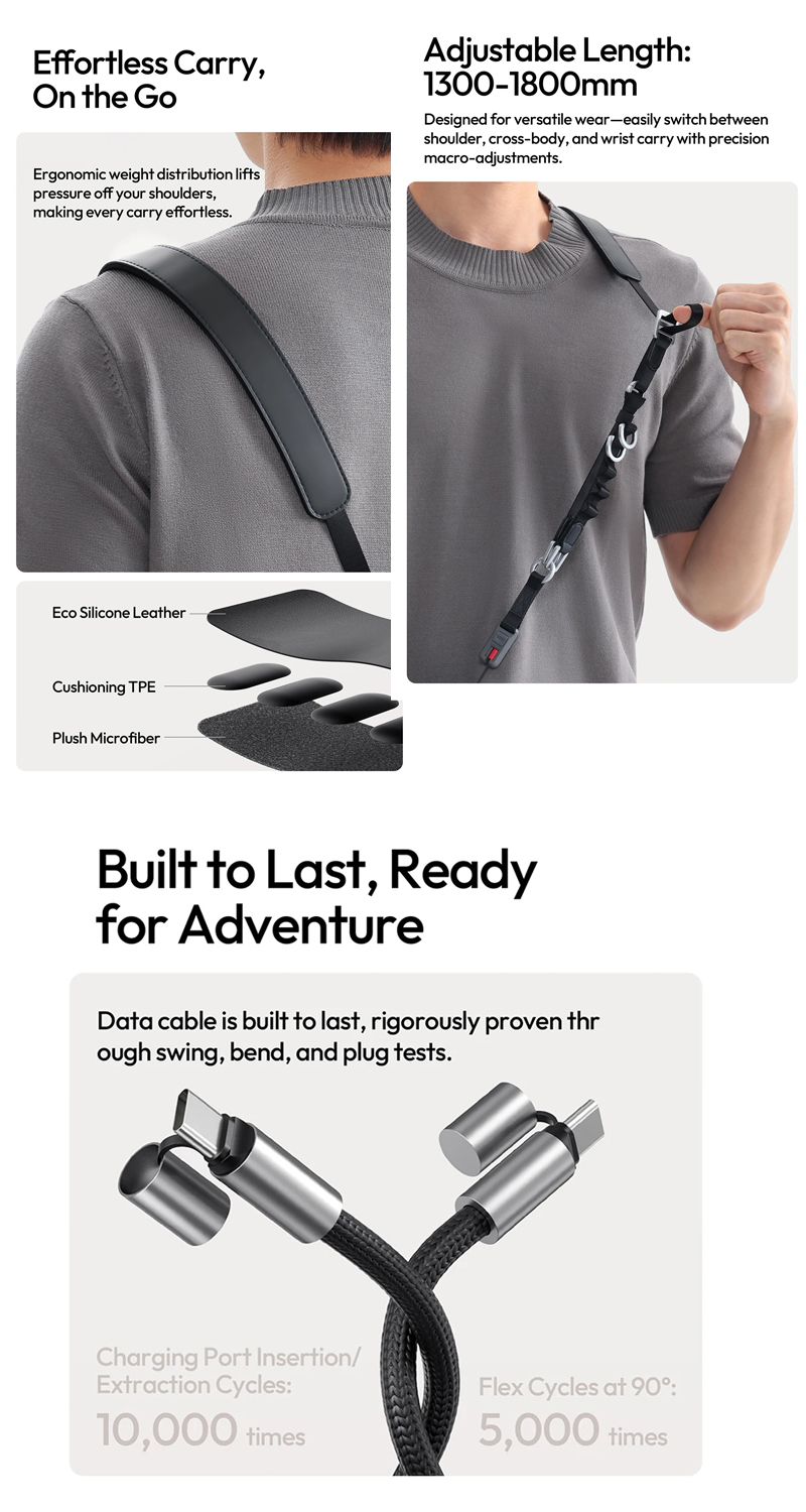 3-in-1 Modular Design: Combines shoulder strap + wrist strap + USB-C cable in one system. Mix and match freely to suit your shooting style.
