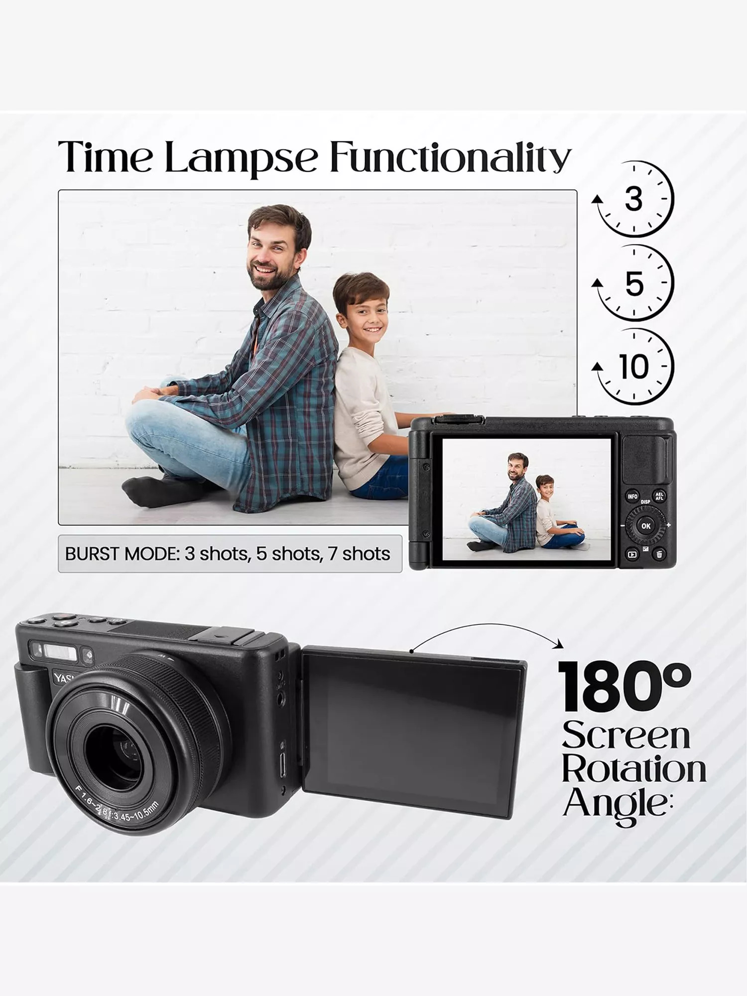 Featuring a Sony 458 image sensor, the YASHICA City100 captures razor-sharp images with a native 13MP resolution, interpolated up to a stunning 72MP. Paired with a 3x optical zoom and 4x digital zoom, this camera delivers vivid detail and clarity at any distance.