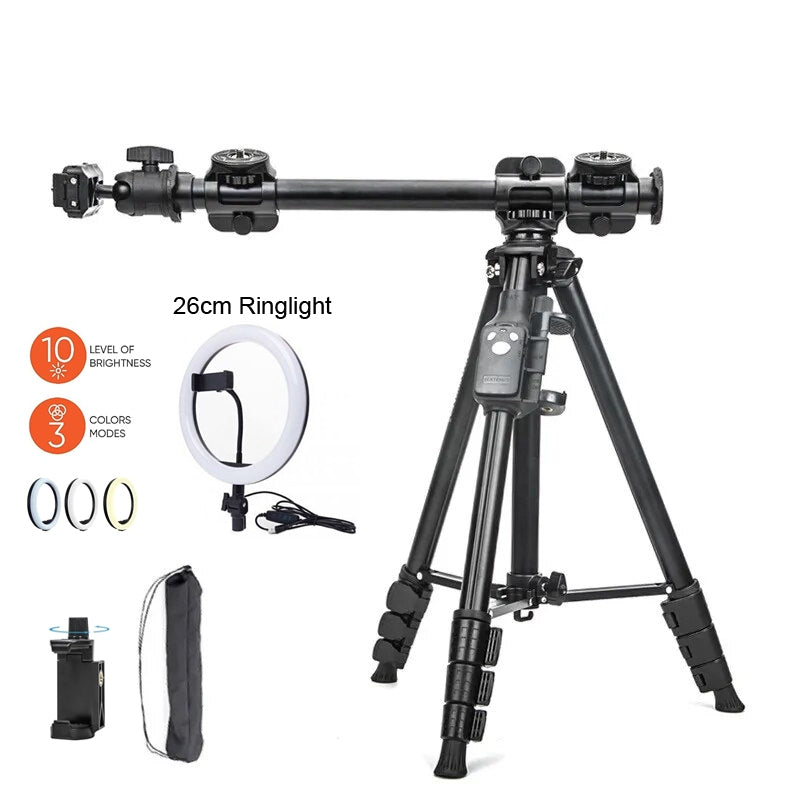 9. Vertical overhead shot, the horizontal bar can install cameras with 1/4 screws, mobile phone clips, microphones, fill lights, etc.