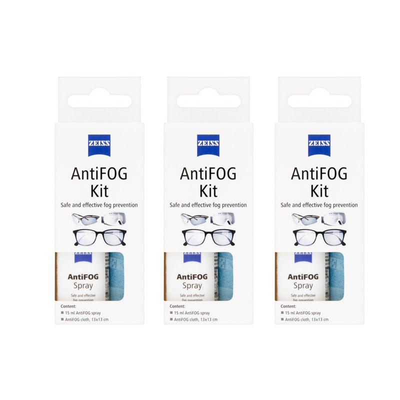 Zeiss AntiFOG Kit (15ml) contains an easy-to-use solution that keeps your lenses from fogging for up to 72 hours and a soft antifog cloth to gently wipe your lenses. The ZEISS AntiFOG Kit effectively and rapidly prevents lenses from fogging while wearing a mask, going from a cold environment to a heated room, enjoying hot beverages, cooking, or engaging in sports while wearing goggles. ZEISS AntiFOG system solution leaves a thin film on the lenses preventing them from fogging up and is safe to use on lenses with anti-reflective coatings.